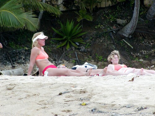 Today was a rest & recovery day since we were in the middle of a three-day minor surf period. Forecasts show a nice solid NW moving in for Friday-Sat and maybe Sunday. Slept in and breakfasted at the Villa, read the paper trying to catch up on local politics (PDP and the NPP; Vieques; and, the Venezuelan Winter League going to hell because of the country's general strike) and events. In the afternoon we mapped several Puntas beaches, from Pools to Rivermouth, for Surfrider's Beachscape program. For the Rincón quad we only need to complete Deadman's and Spanish Walls (it was mud bogged from the north end). We capped our "surf" session by sipping some piña coladas and tropical rum punches (parcha y piña) at the Tamboo Tavern (at Beside the Pointe), the Calypso at Maria's Beach, and back at Villa Cofresí. We met a just married couple while beachscaping Sandy Beach -- he is from Michigan and she is from Manatí (home of Tubos!). We talked story with the waiter at Tamboo... turns out he is from Brittany, France and he was surprised when I asked him about which was the better place to stay next October, Brest or Quiberon. He recommended Crozon, a long walling wave that I have ffrequently viewed on the cams. Turns out the bartender at the Calypso had some mutual acquaintances from our high school days: las hermanas Hardy! After a full afternoon of beachscaping, tropical drinks and appertivos, we were ready for Villa Cofresí's special Christmas Eve dinner. Featured was one of our favorites: lechón, arroz con gandules, salad, garlic bread, amarillos, and flan. We added a bottle of Concha y Toro red. |
