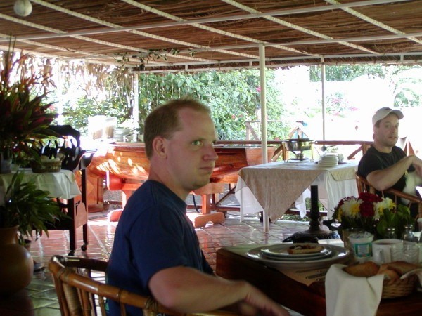 ![]() El Mono Mantay performing his daily morning ritual at the villa: breakfast. |